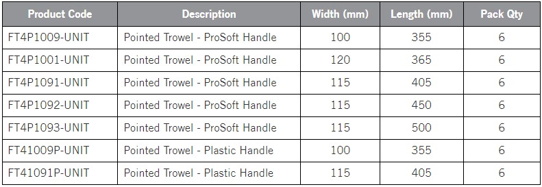 Pointed Trowels - ProSoft & Plastic Handle